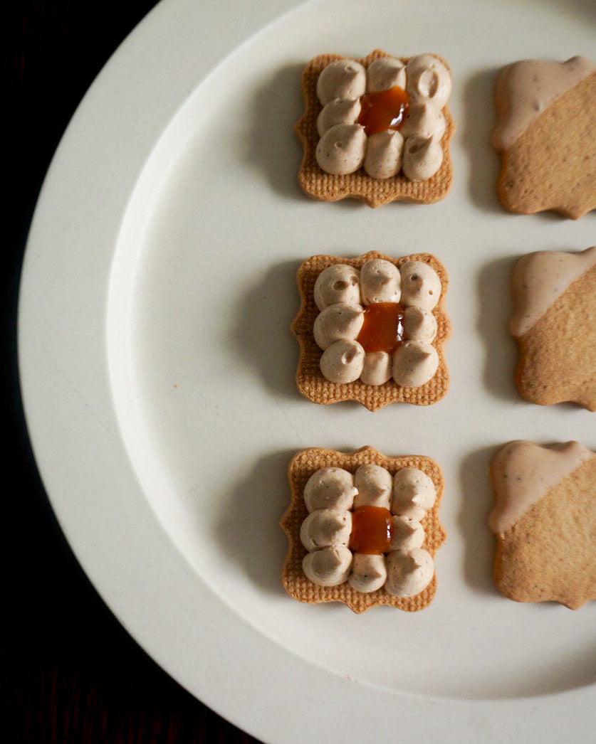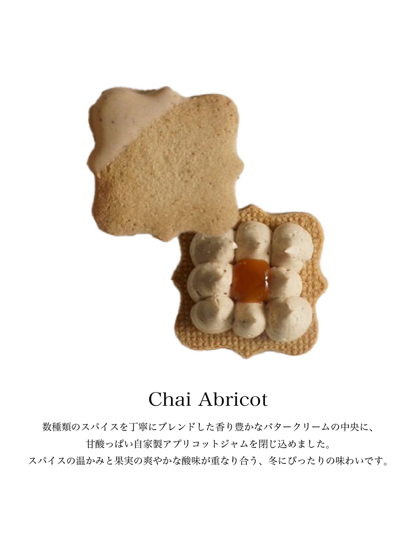 数種類のスパイスを丁寧にブレンドした香り豊かなバタークリームの中央に、甘酸っぱい自家製アプリコットジャムを閉じ込めました。