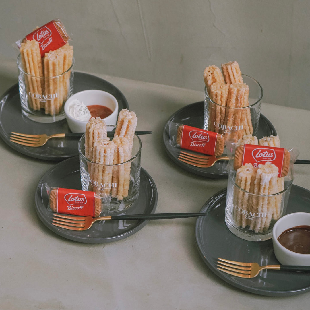 とうもろこしで作られた外サクっ、中もっちりのチュロスにCOBACHI CHAIオリジナルトッピングを4種ご用意しております。